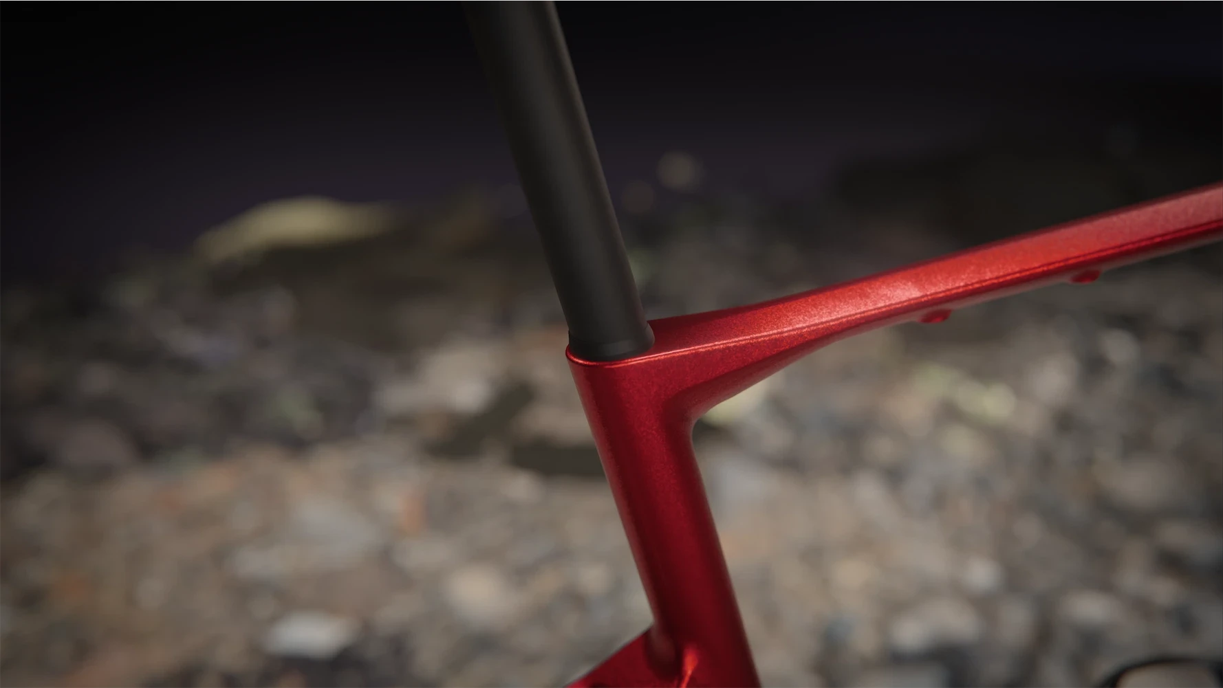 Aerodynamisch optimiertes Carbon- Tubing mit integrierten Übergängen und gezielter Luftströmung.