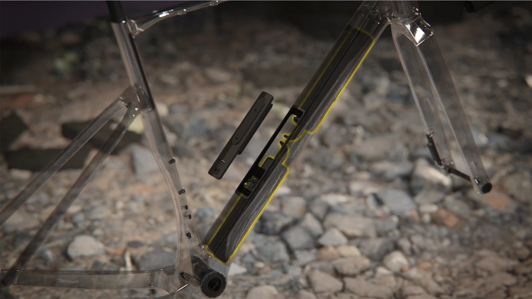 Das integrierte RidePack im Unterrohr bietet Platz für Schlauch, Werkzeug und Snacks – mit dem neuen Fidlock-Magnetverschluss blitzschnell geöffnet und bombenfest geschlossen.